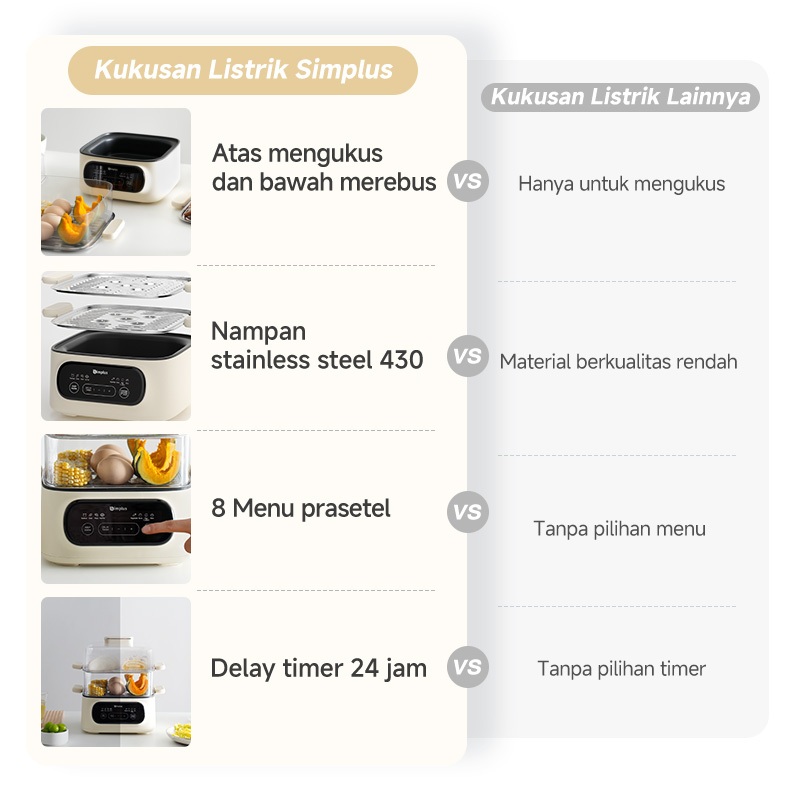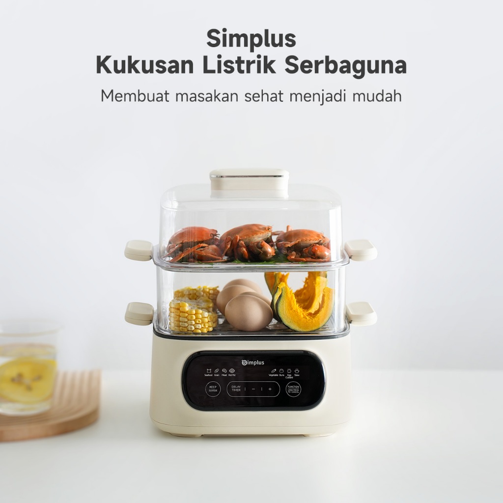 Simplus Kukusan Listrik 2 Tingkat Kukusan Kapasitas 11L Pencil Merebus & Hotpot Delay Timer 24 Jam