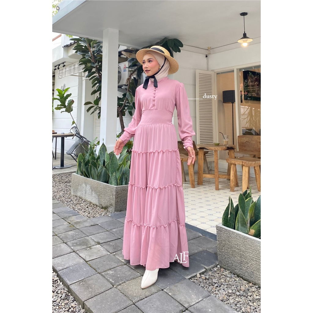 Gamis Premium, Polos Putih Tulang Kancing Maxi Ceruty Babydoll | ORIGINAL ALFAINA AYESHA DRESS