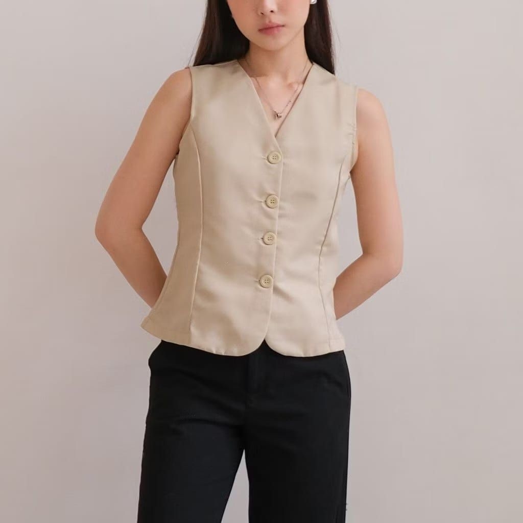 Vest Hitam Wanita Korean Style Rompi Tanpa Lengan Outer Jas Premium Kekinian Murah Gratis Ongkir