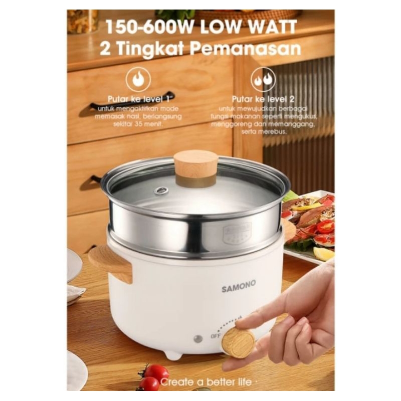 SAMONO Panci Listrik SWDG01S 4 Liter Ceramic Coating + Steamer Stainless