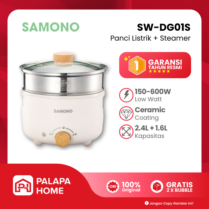 Samono Multi Cooker SW-DG01S Panci Kukusan Listrik Low Watt Food Steamer Kukus Makanan Electric