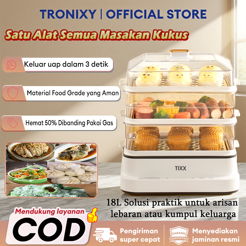 TRONIXY Steamer Listrik Kapasitas Besar 18L 3 Lapis Ruang Steamer Listrik Multifungsi Dengan Fitur Pengatur Waktu