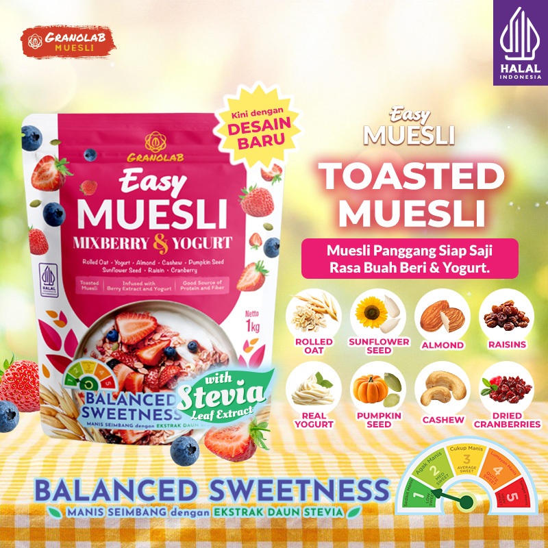 EASY MUESLI MixBerry Yogurt Bits - Toasted Muesli Berry Yogurt Sereal Siap Makan | Granolab Muesli