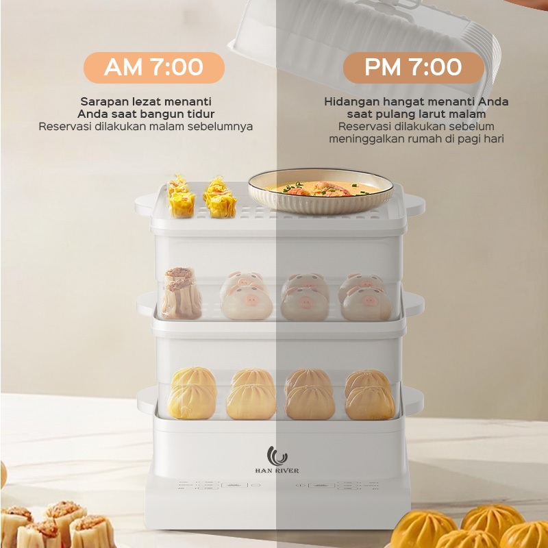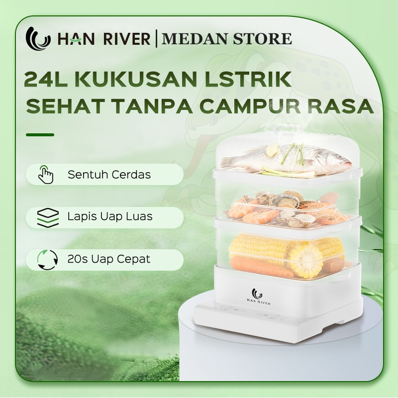 Han River Medan Panci Listrik 24L Electric Steamer 4 Lapis Multifungsi