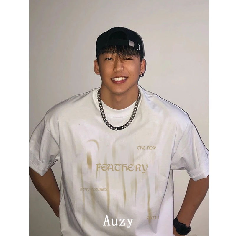 AUZY Gaya jalanan trendi Cahaya dan bayangan kabur kaos pria wanita atasan Lengan Pendek T-shirt skena baju oversize t s