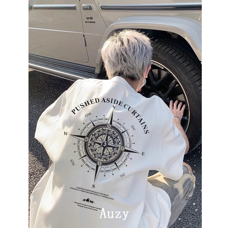 AUZY retro Amerika Mode kompas kaos pria wanita T-shirt baju oversize t shirt distro
