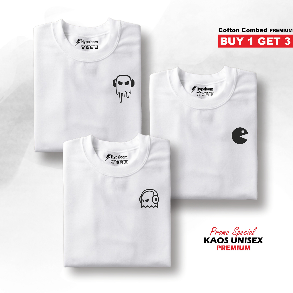 Hypeloom Buy 1 Get 3 Pcs Kaos Pria Distro Premium Cotton Combed 30s Pacman Simpel Elegant Netes