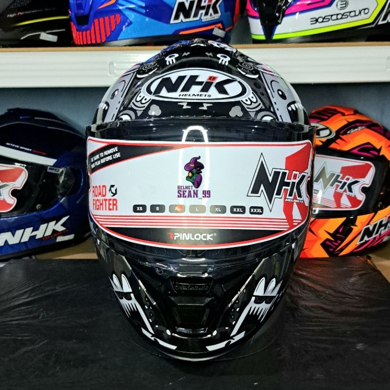 HELM NHK MARK 1 DOODLES BLACK SILVER SINGLE VISOR RHD LENS LIGHT SMOKE FULL FACE ORIGNAL SNI