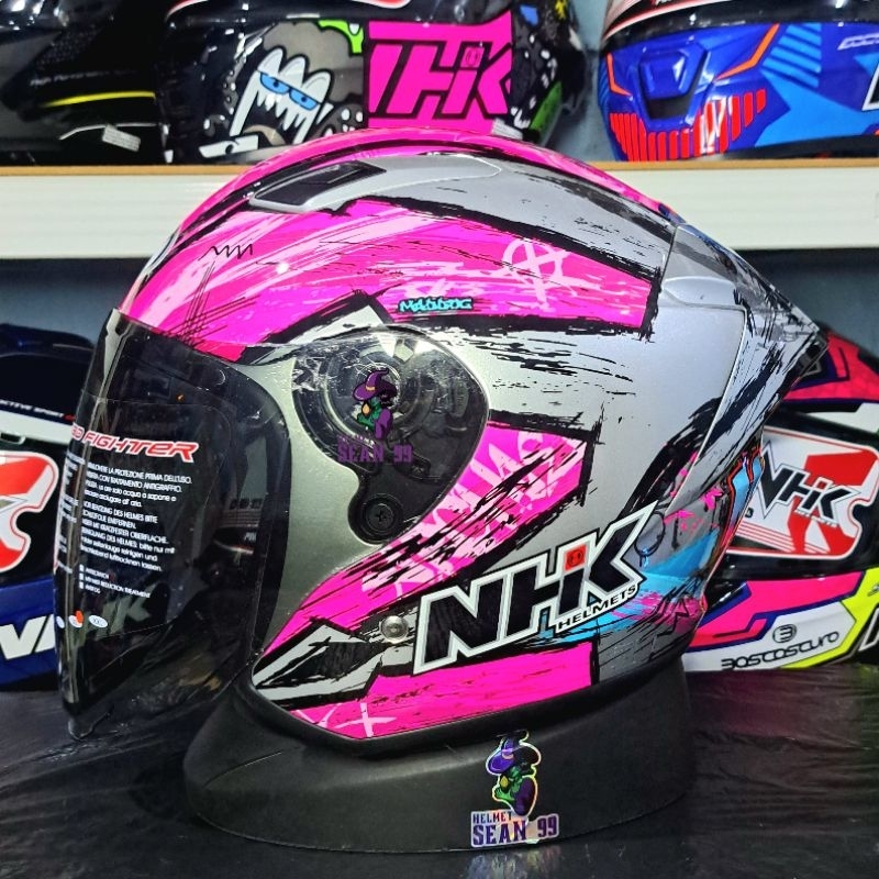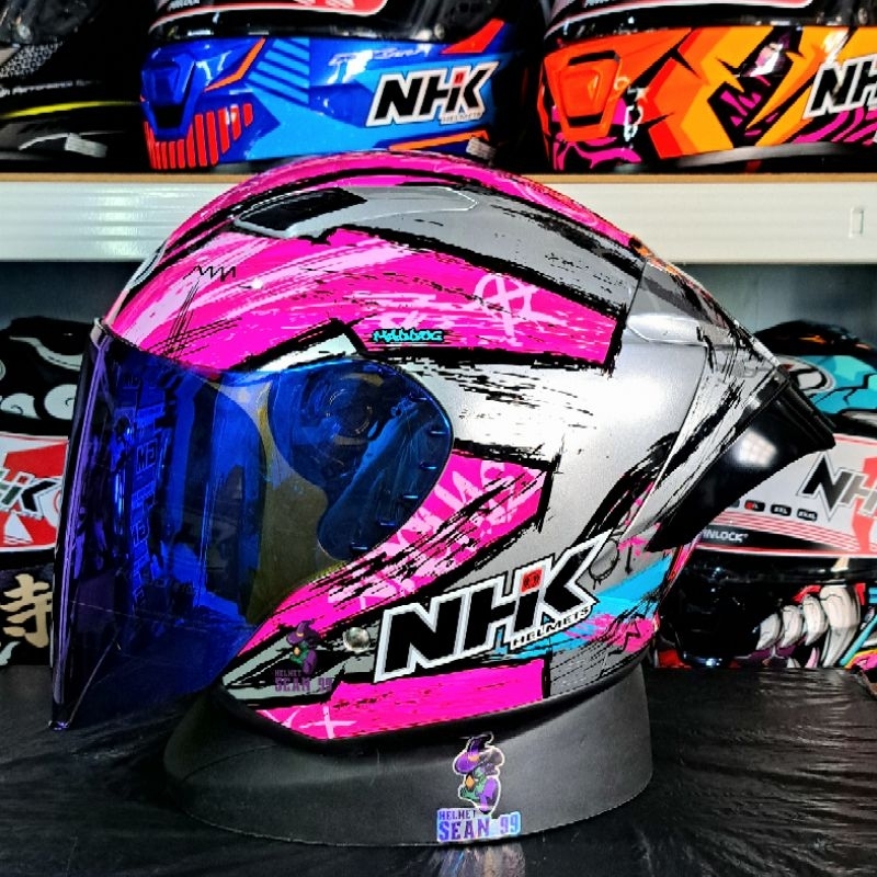 HELM NHK R1 ELITE GP ARCHIE SINGLE VISOR LIGHT SMOKE HALF FACE ORIGINAL SNI