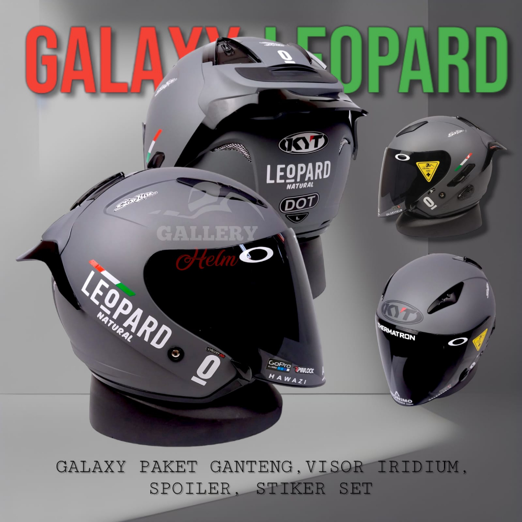 KYT GALAXY FLAT R GORILA GREY DOFF PAKET GANTENG LEOPARD | HELM KYT HALF FACE
