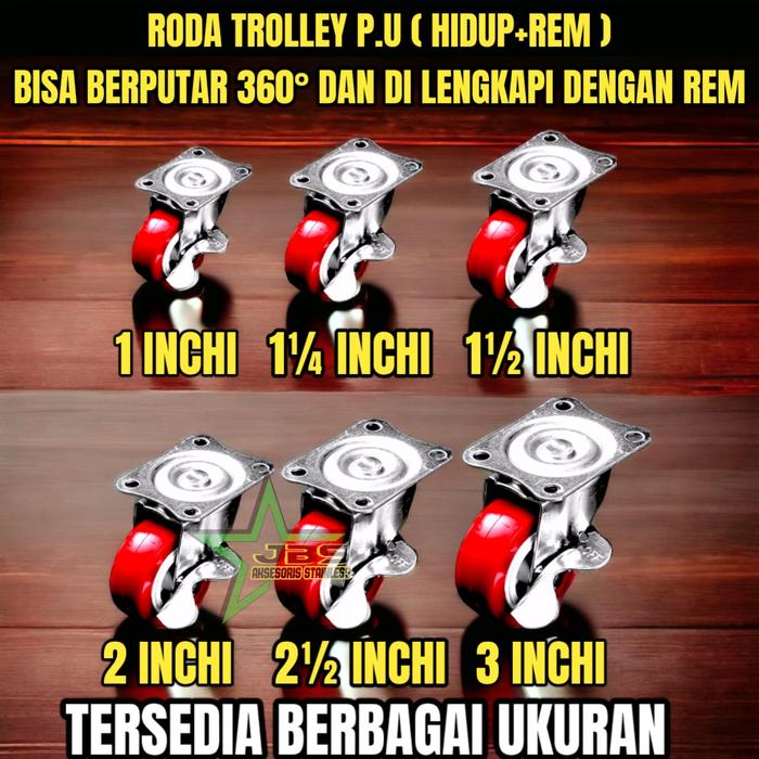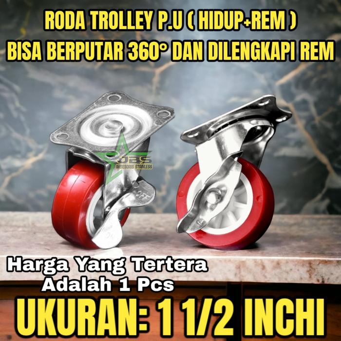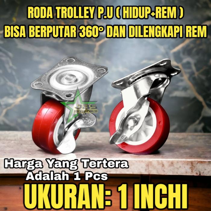 HIDUP+REM RODA TROLLEY TROLI PU MERAH 1 INCH | 11/4 INCH | 11/2 INCH - 1" HIDUP+REM