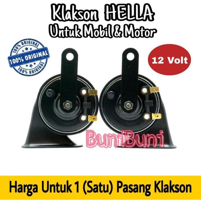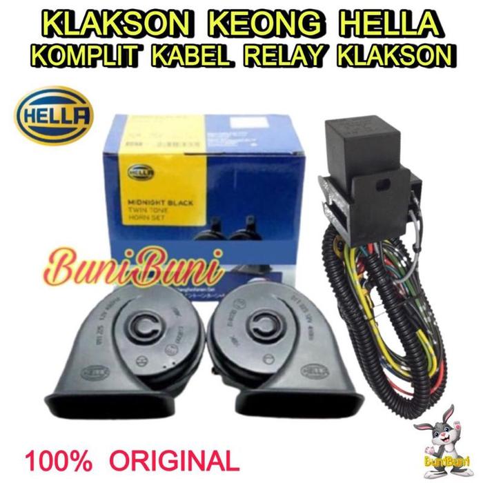 KLAKSON KEONG HELLA HITAM ORIGINAL KOMPLIT KABEL RELAY UNTUK MOBIL & MOTOR 12 VOLT (SEPASANĢ) - KLAKSON HELLA SAJA
