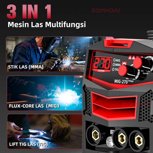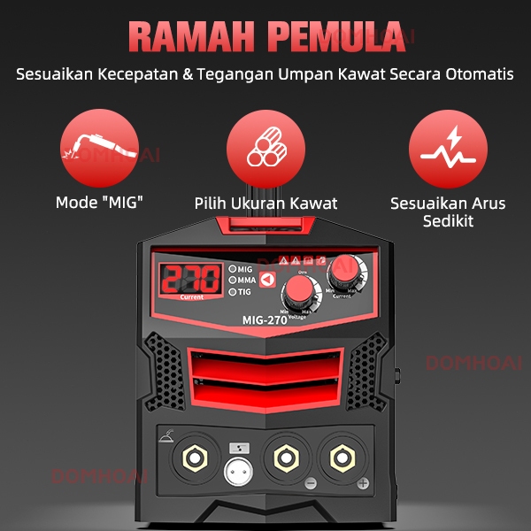 Gaya Terbaru DOMHOAI 3IN1 Mesin Las 450 Watt Daya ultra tinggi Inverter Las Listrik MIG-270 Profesional Mesin Las Logam