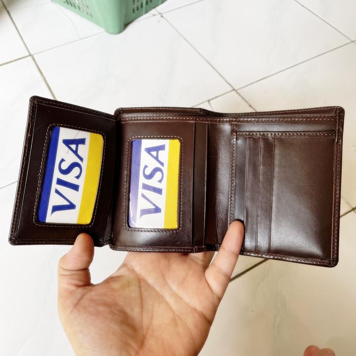DOMPET KULIT LIPAT 3 POLOS BAHAN KULIT SAPI ASLI UNTUK PRIA - KARTU - COKLAT TUA