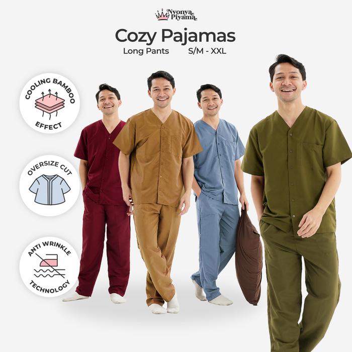 Nyonya Piyama Poly Bamboo Cozy Set Celana Panjang Polos Pria Vol 2 - Carbon, S/M