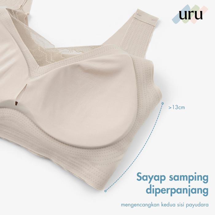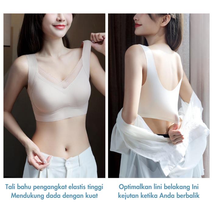 Uru [2Pcs] Bra V Renda Seamless Bh Wanita Lite Bra Push Up Ringan Jumbo Pakaian Lebar Tanpa Kawat - Hitam+Hitam, One-Siz