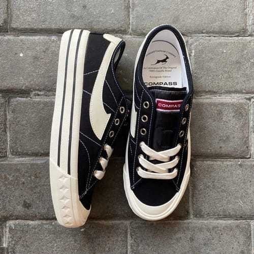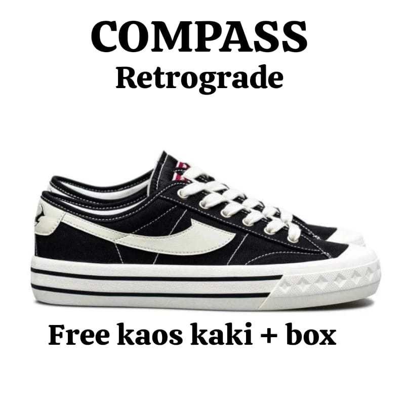 New!!Compass Retrograde Low Black White - White Blue Pria Wanita Kekinian / Sepatu Sekolah Sneakers Unisex Hitam Putih