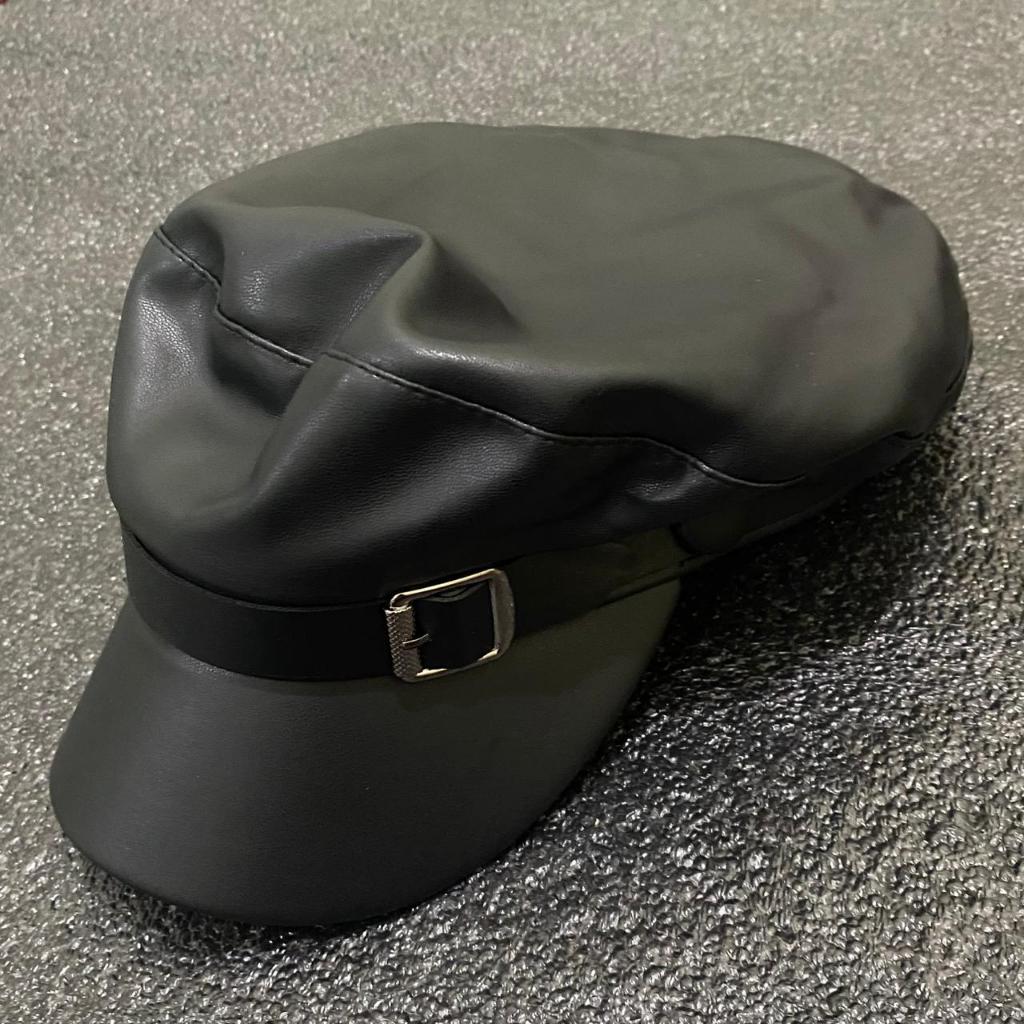 KIAMA - WH01 Topi Baret Apolo Classy Hat Premium Kulit Leather Hitam motif