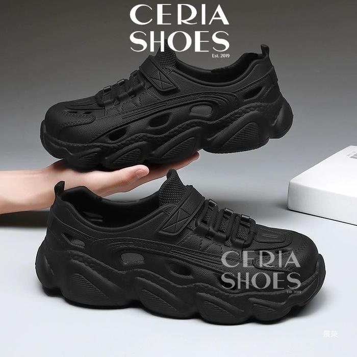 SEPATU KARET PRIA WANITA IMPORT BAHAN EVA RINGAN SOL ANTI SLIP MODEL SLIP ON SHOES FLAT - HITAM, 35/36
