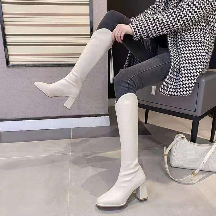 Pinkey P102 Restock Sepatu Long Boots Flat Hitam Shoes Wanita Kerja - Beige, 36