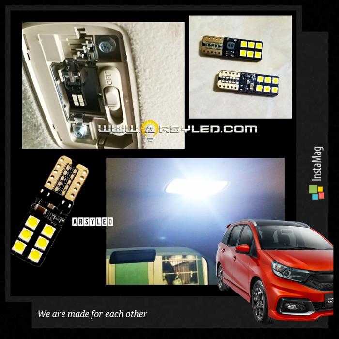 ARSYLED LAMPU PLAFON KABIN MOBIL T10 LED SMD 3030 12 TITIK HONDA NEW BRIO MOBILIO BRV HRV PUTIH - PUTIH