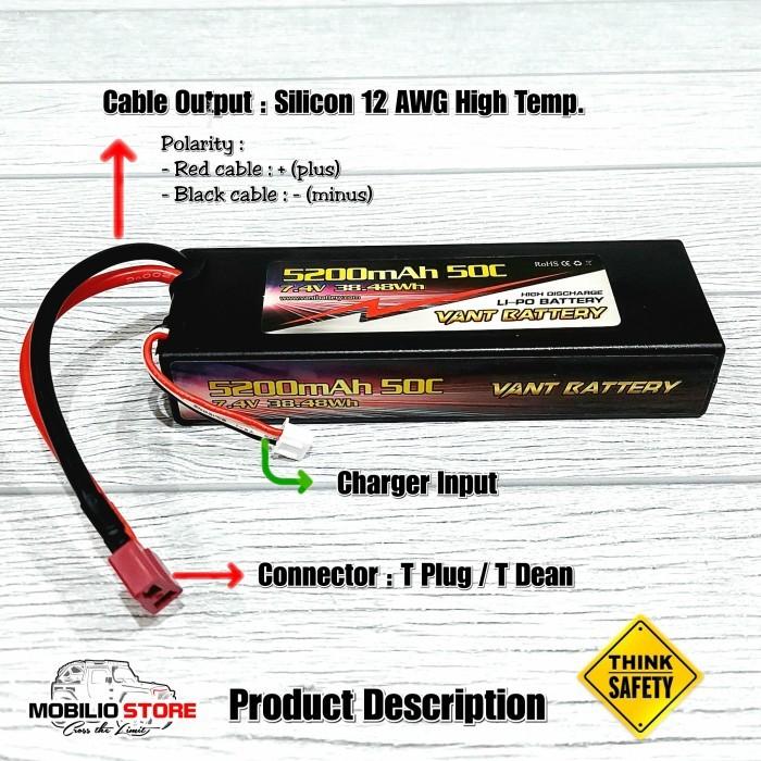 Vant Battery Lipo 2S 7.4 Volt 5200 mAh 50C Baterai RC Lithium Polimer