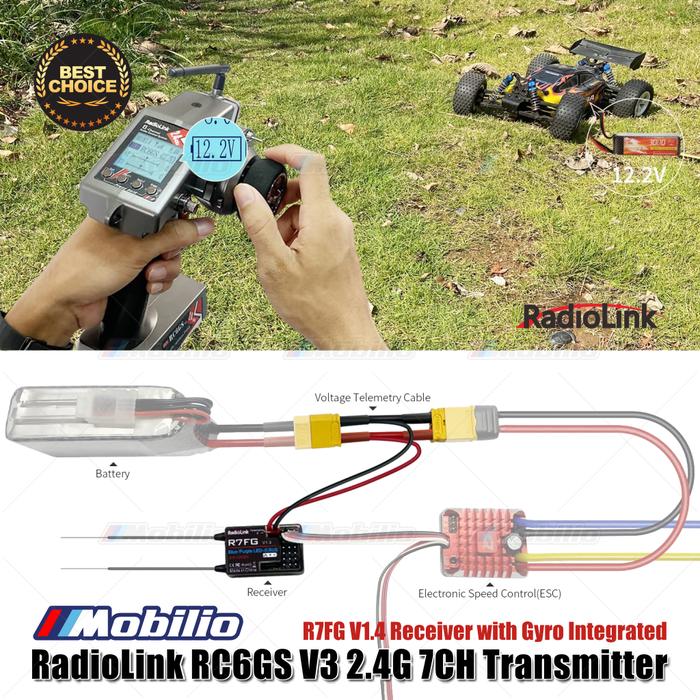 Radiolink RC6GS V3 7 Channels RC Transmitter and Receiver R7FG Fully Waterproof Available for Cars