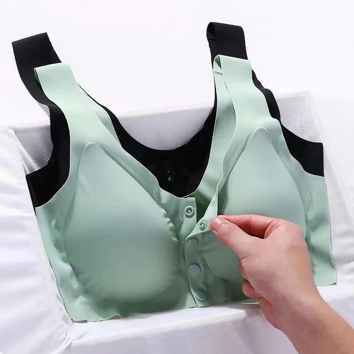 Bra Motif Wanita Bh Kancing Depan Busui Friendly Anti Sesak Seamless Polos Bra Import Premium 1184 Busa Tipis - Black, M