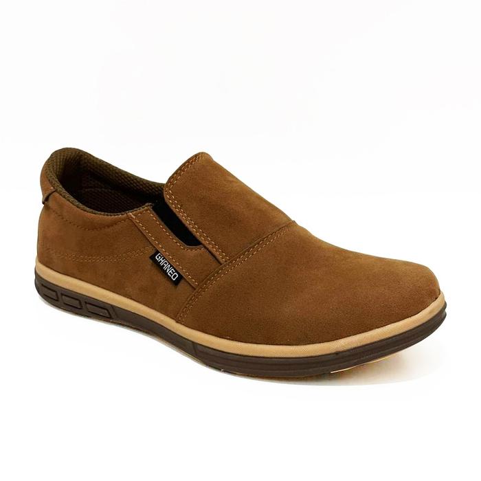 GHANEO SEPATU SLIP ON CASUAL KULIT SUEDE UNTUK KERJA DAN SANTAI UKURAN 39-43 G 22 SHOES KARET PRIA - TAN, 39