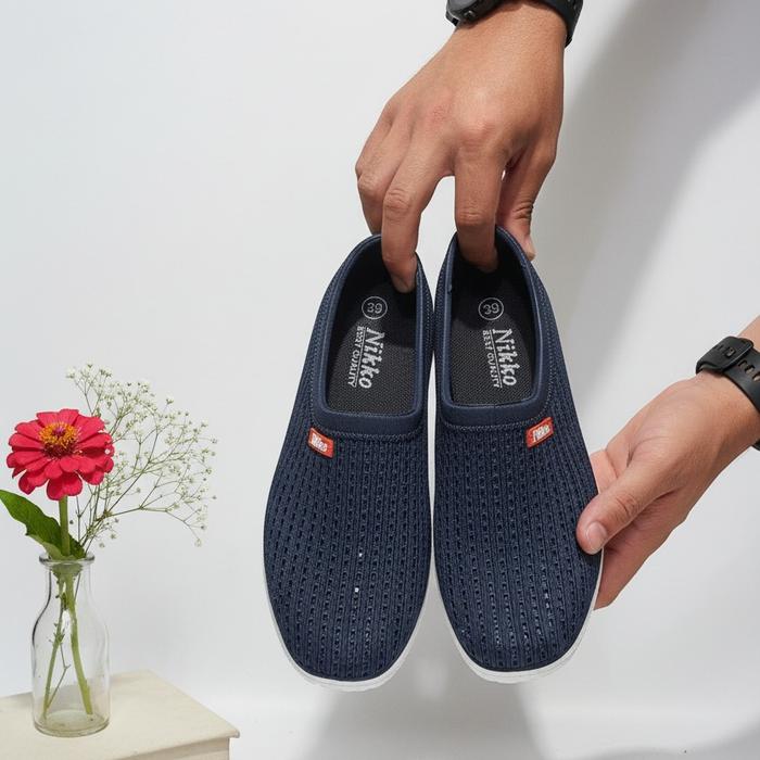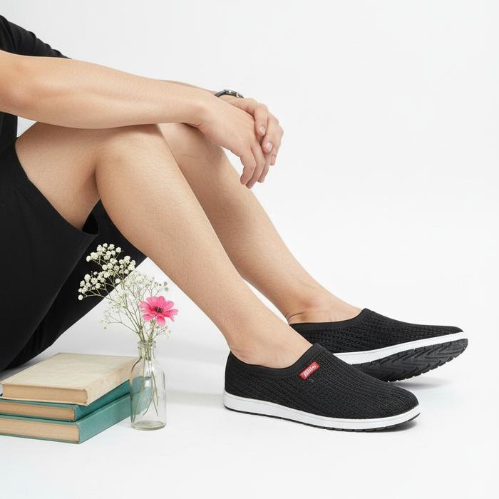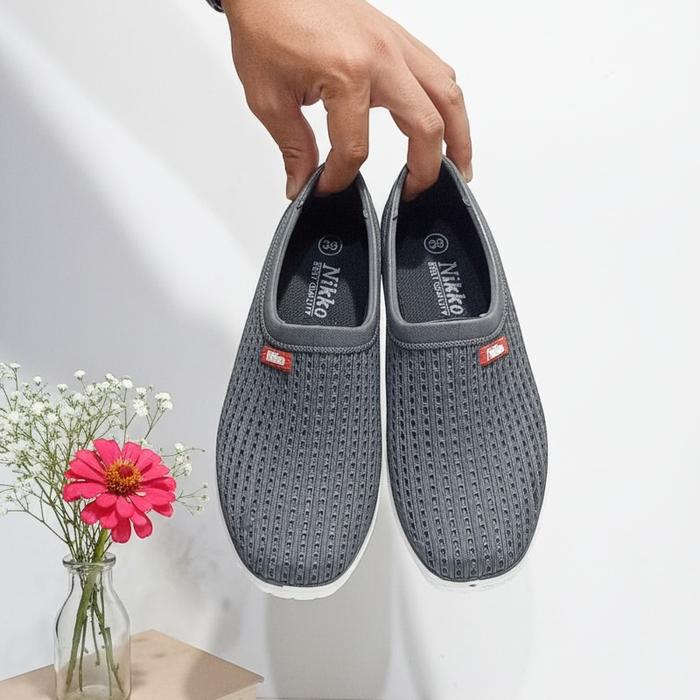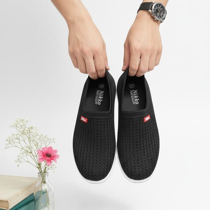 NK 152 - SEPATU SLIP-ON PRIA/WANITA BAHAN KARET ANTI AIR TAHAN LAMA GAYA UNISEX VIRAL TERBARU FLAT SHOES - HITAM, 38