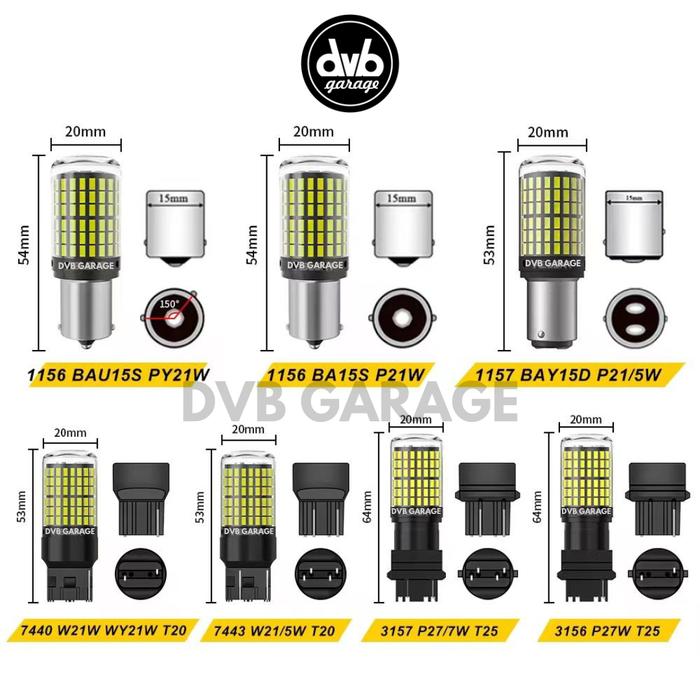LAMPU LED T20 144SMD 12-24V 7440 7443 1157 BAY15D 1156 BAU15S BAI15S SEIN DAJJAL MUNDUR - 1156 BAU15S, PUTIH