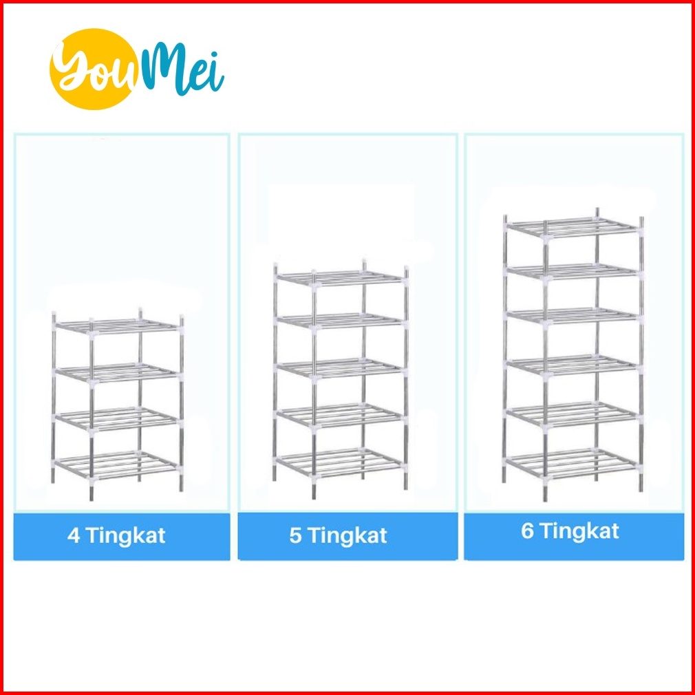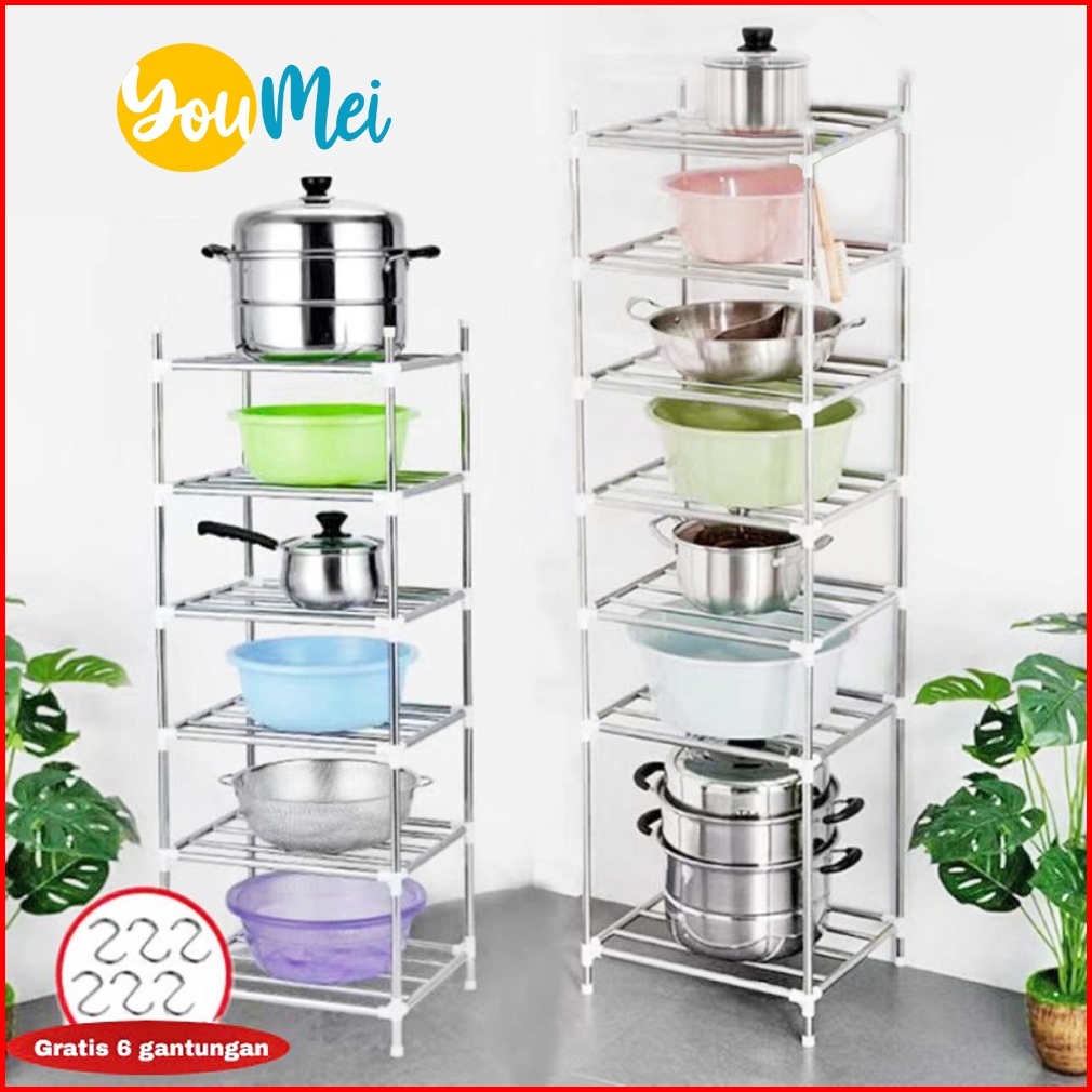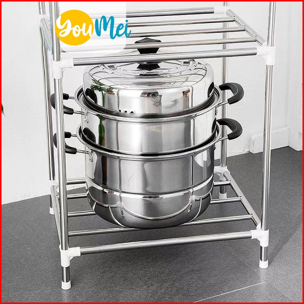 Rak Susun Dapur Kamar Mandi Tempat Panci Peralatan Dapur Rak Penyimpanan Stainless Steel Bertingkat Serbaguna Mudah Dira