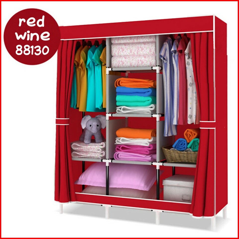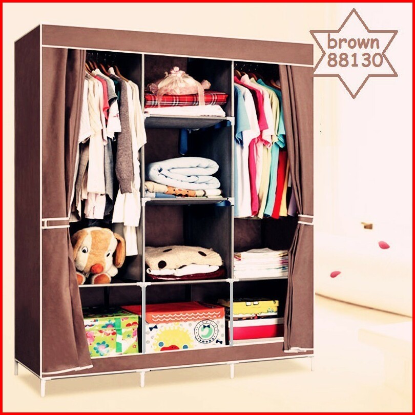 Lemari Pakaian Kain Portable Jumbo 88130 3 Sekat Lemari Anak Kost