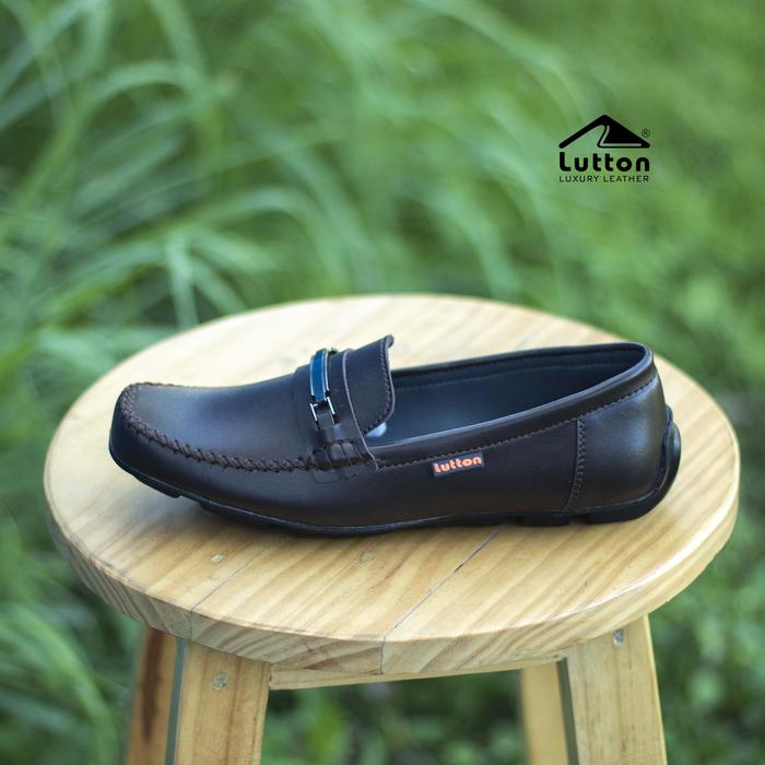 SEPATU MOCCASIN PRIA LUTTON A1 SLIP ON KULIT SINTETIS – HITAM COKELAT NYAMAN ELEGAN SHOES - HITAM, 39