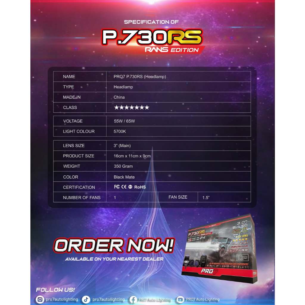 GRATIS EXTRA KAOS PRO7 x RANS P730RS / P.730RS / P730 RS HEADLAMP 3inch 55W/65W FOGLAMP 3inch 40W/50W BLUE LENS SUPER BI