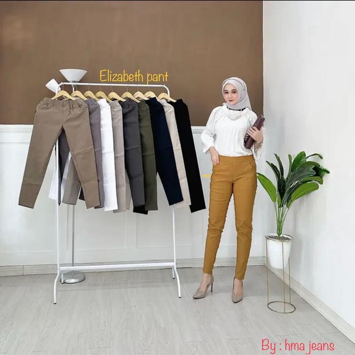 Elizabeth Pant Celana Chino Wanita Melar Elastis Celana Panjang Katun Casual Celana Kantor Kain Stretch Nyaman Slim Fit