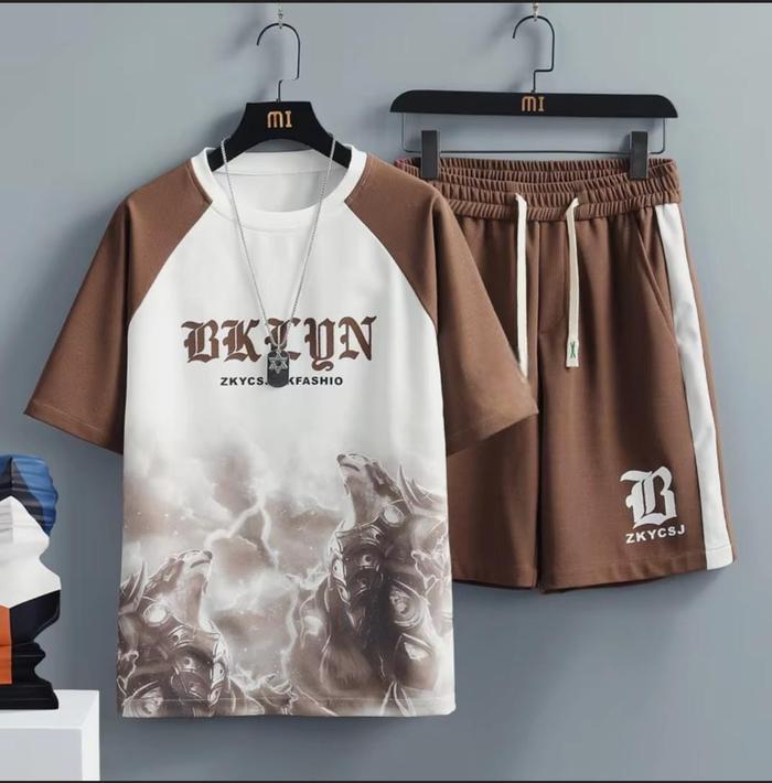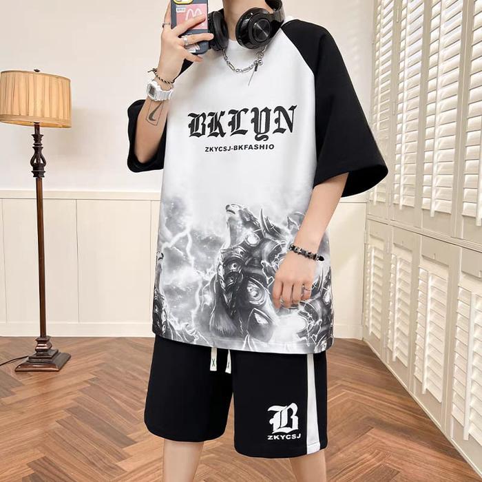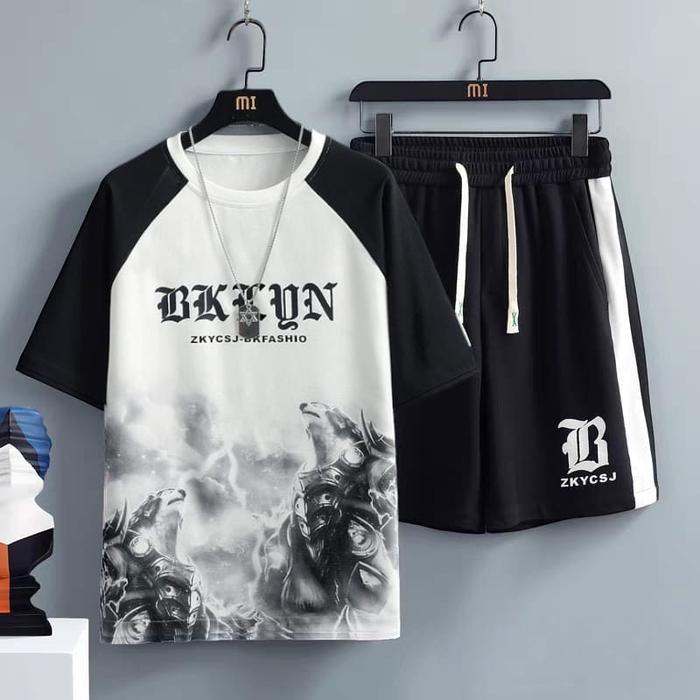 Setelan Beklun Kkdd - Baju Kaos Dan Celana Pendek Unisex Dewasa Keren Santai - Pria - Hitam Putih, S/M