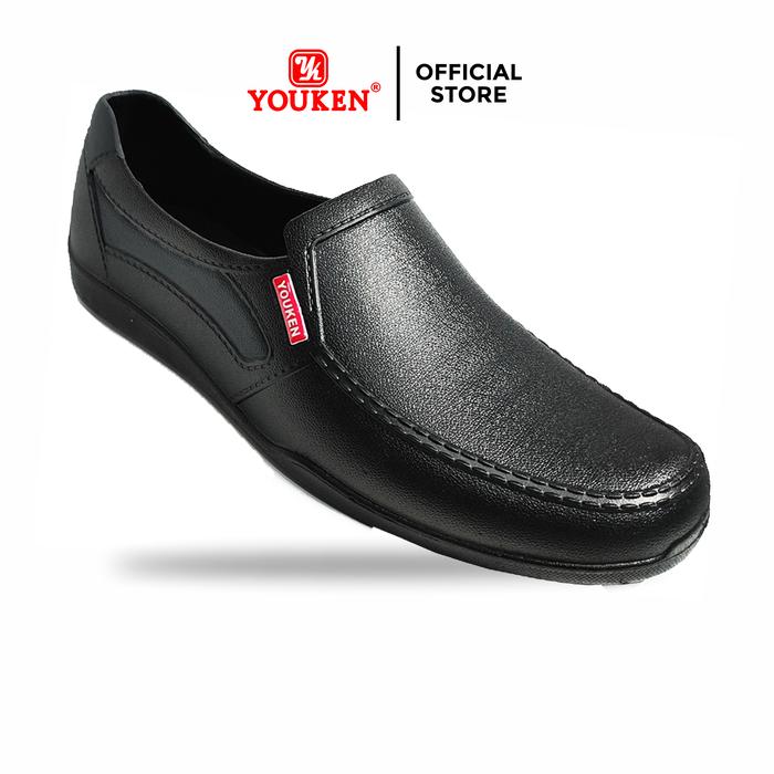 YOUKEN HOKI 143 SEPATU KARET SELOP SEPATU MURAH PRIA DEWASA ANTI AIR ANTI LICIN SEPATU KARET SLIP ON LENTUR RINGAN M-L-XL FORMAL SHOES FLAT - HITAM, M (38/39)