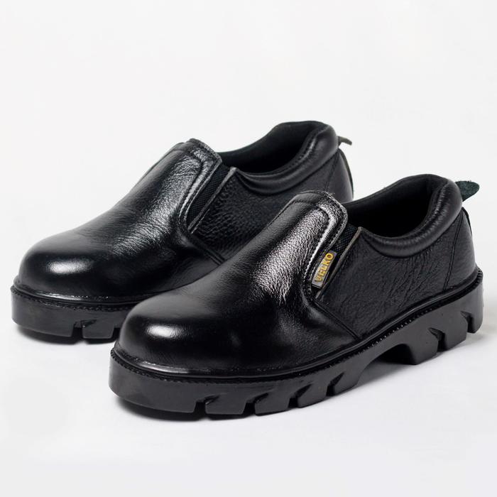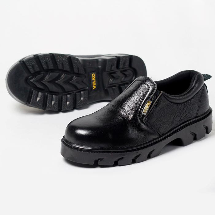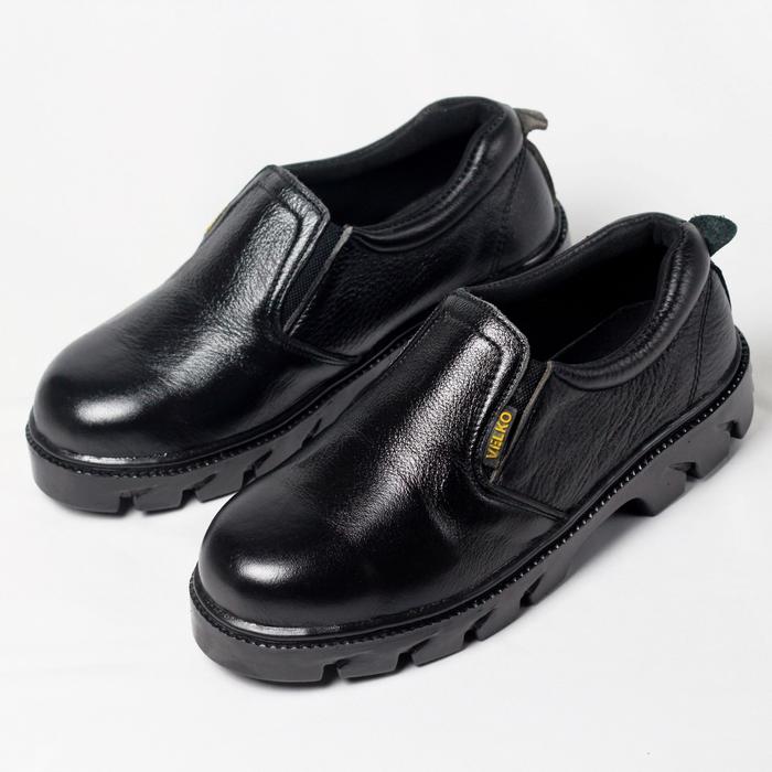 SEPATU SAFETY SLIP ON KULIT SAPI ASLI ORIGINAL VELKO SHOES KERJA PRIA - HITAM, 38