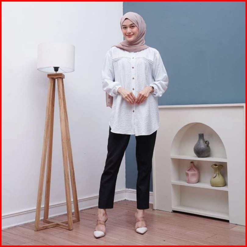 Luna Blouse Kemeja Wanita Kekinian Pololinen Putih
