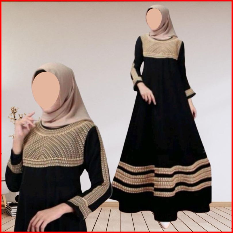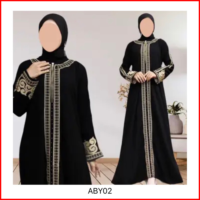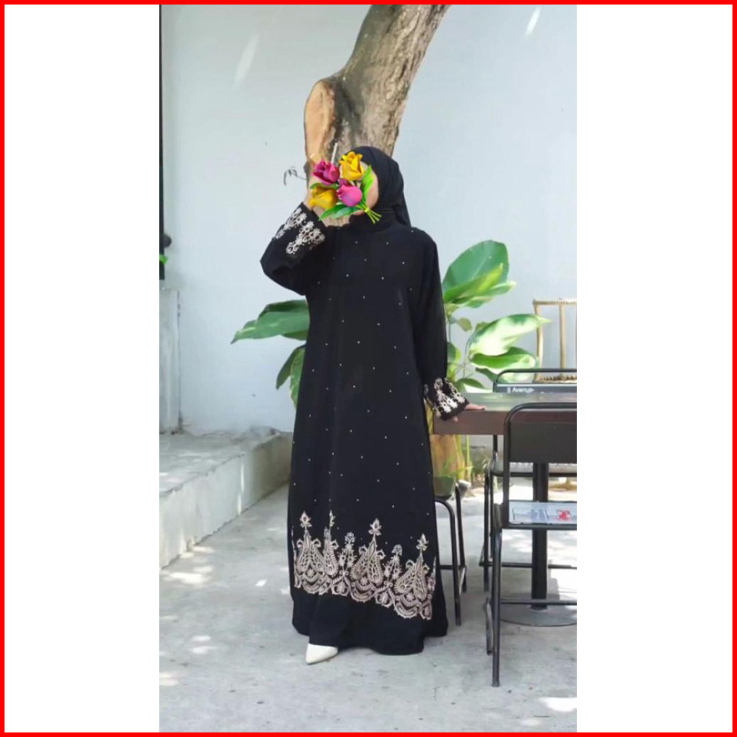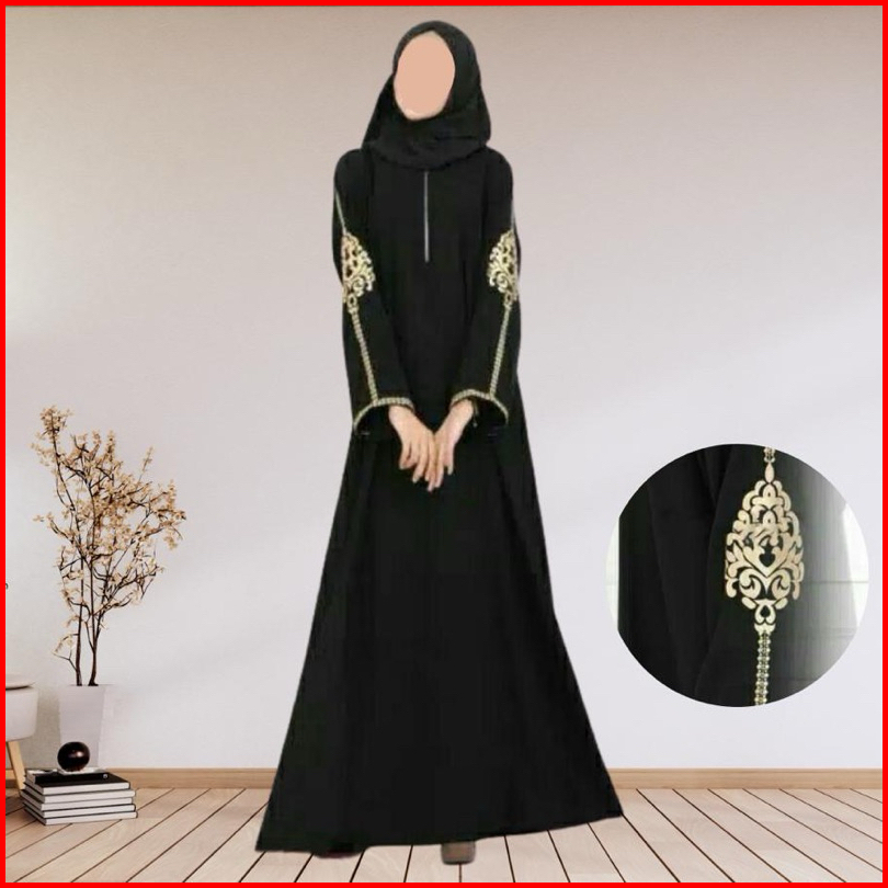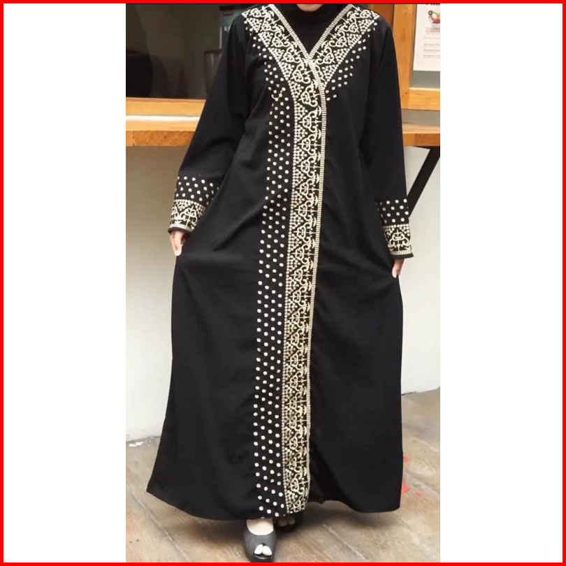Gamis Abaya Arab Hitam Polos List Bordir Busui Bahan Jet Black Saudi Kwalitas Terjamin Mabrurstore