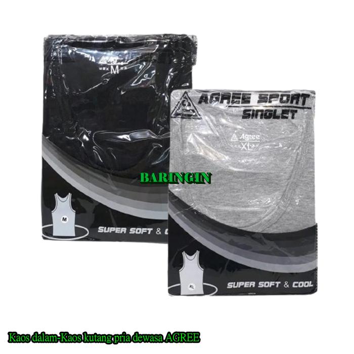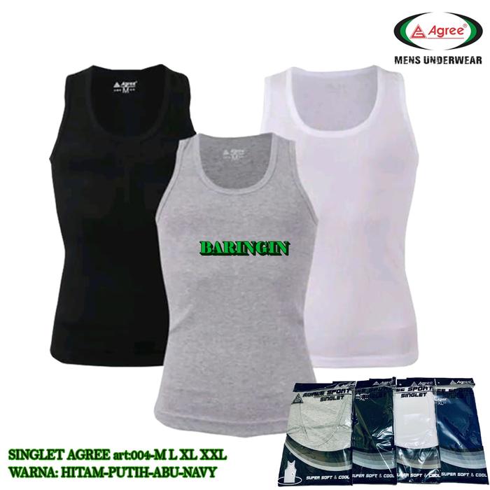 3 Lembar Kaos Dalam Pria Dewasa-Agree Singlet Cowok Polos Katun Keren Hitam Oblong Distro - Hitam - Abu- Putih, M