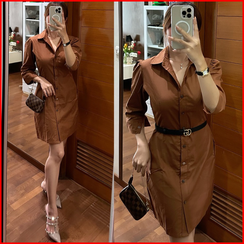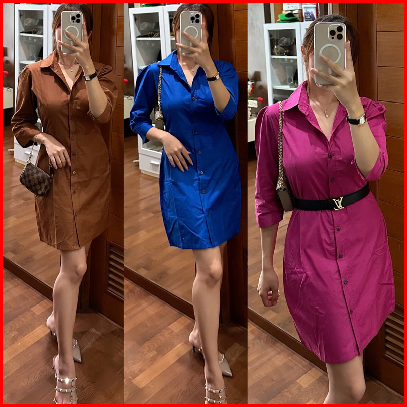 Dress Kemeja Wanita Long Sleeve Basic Poplin Baju Wanita Formal Busui Hijab Friendly