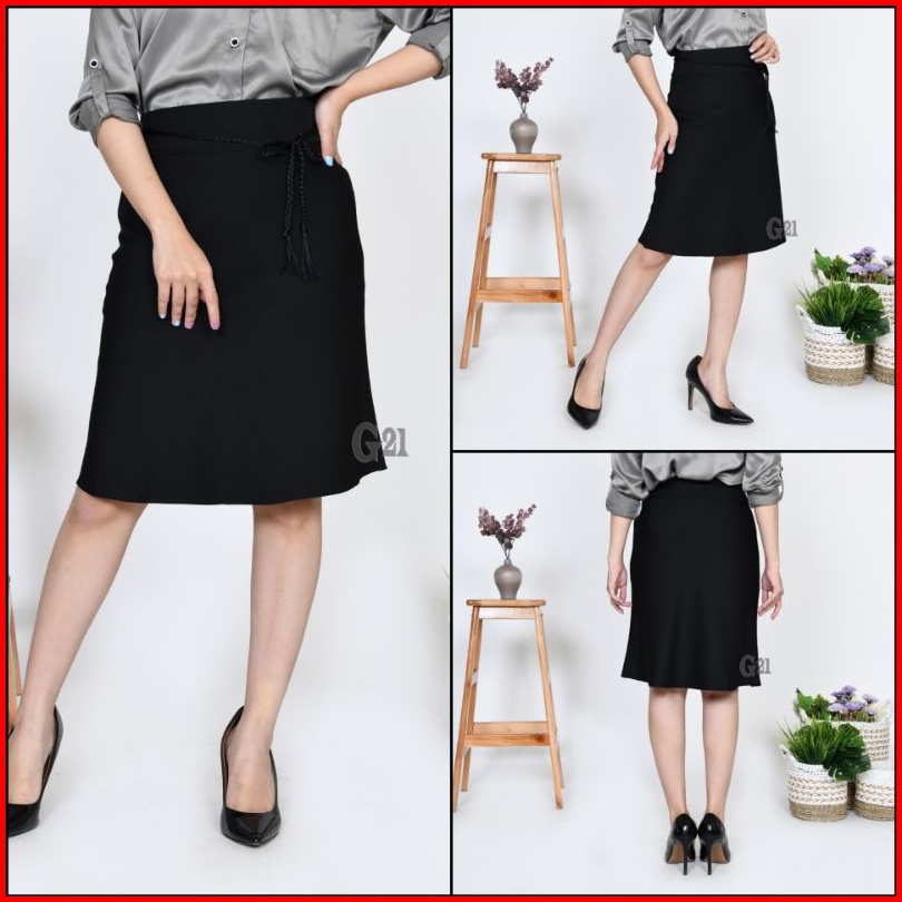 Rok Kerja Kantor Pendek Midi Skirt Model A Line 3 4 Dan 7 8 Hitam Polos Wanita Bahan Formal Import High Premium Quality