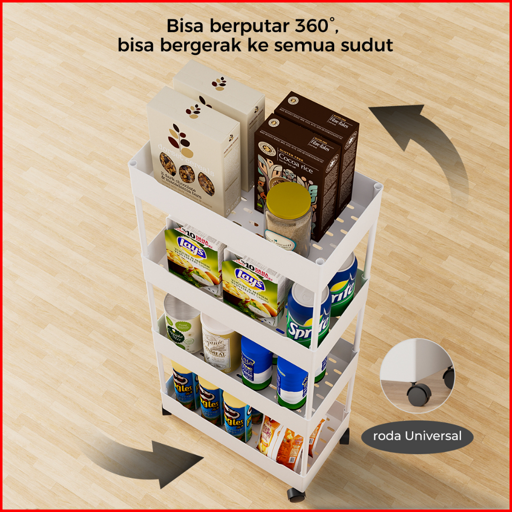 Homes Puith Rak Troli Susun Serbaguna Rak Troley Square Plastik 4-layer Rak Susun Serbaguna Rak Kamar Mandi Dengan Roda