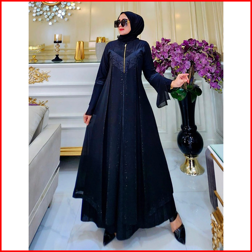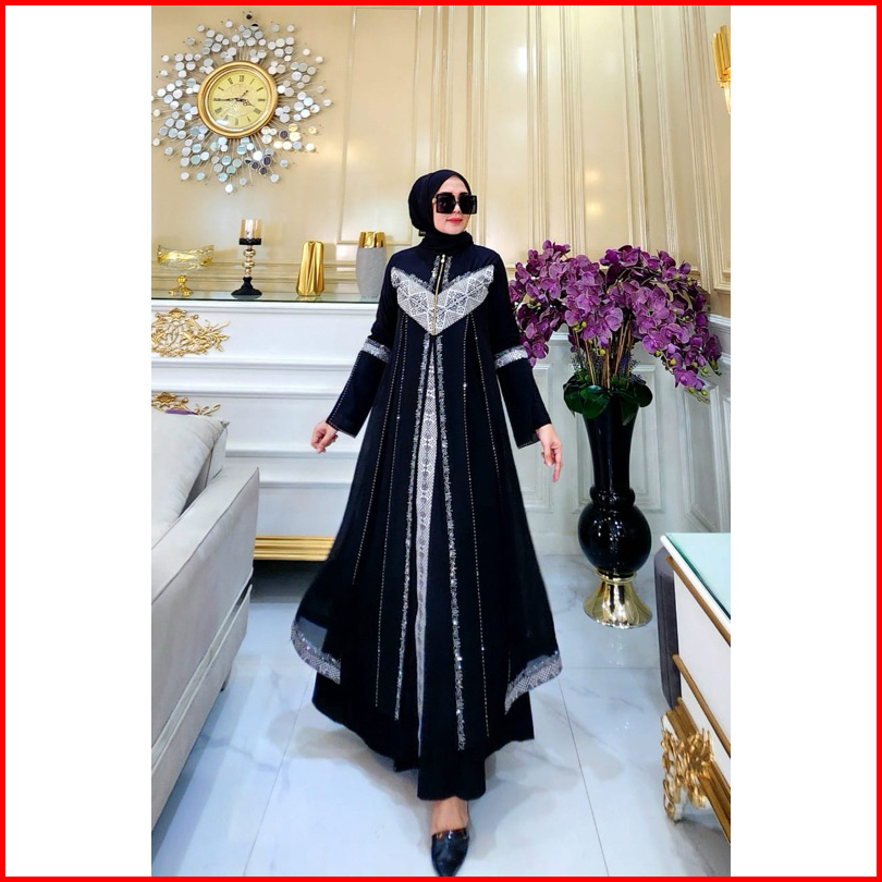 Gamis Abaya Turkey Busui Hitam Bordir Full Putih Dan Full Hitam Busui V Tangan Kalong Princess Mln