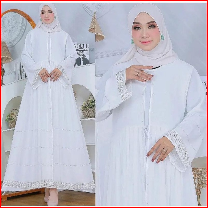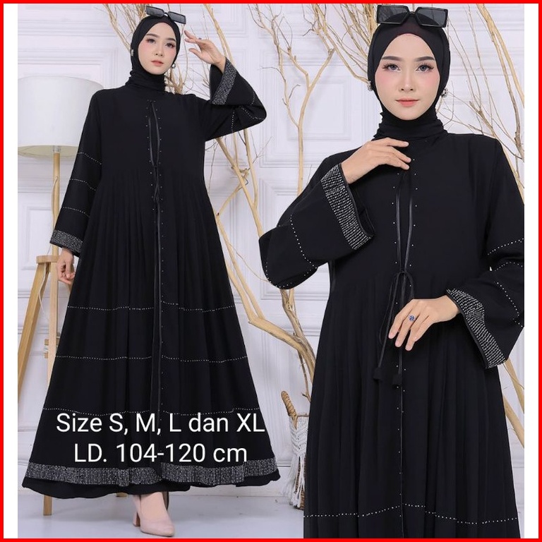 Abaya Baju Muslimah Bordir Gamis Mata Tempel Abaya Umroh Abaya Turkey Hitam Putih Kombinasi Lembut
