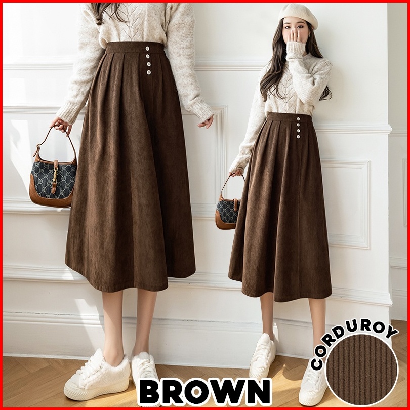 Karakorea 320 Corduroy Velvet Skirt Korean Women Skirt Maxi Skirt