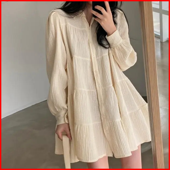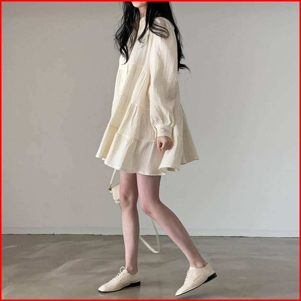 Lembut Lengan Panjang Rok Short Dress Lengan Engah Gaya Perancis Dress Temperamen Ramping