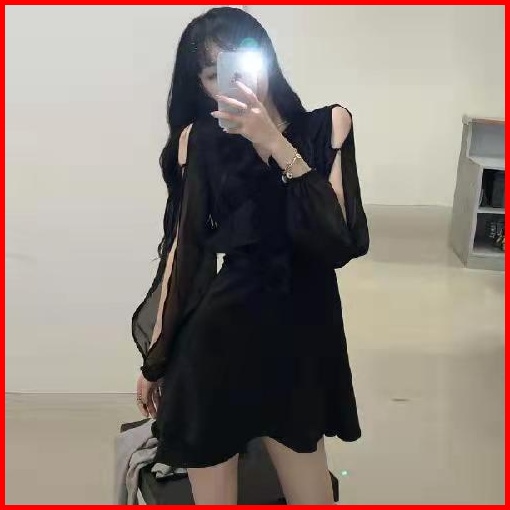Sexy Kekinian Pendek Hitam Set Wanita Korea Dress Wanita Casual Dress
